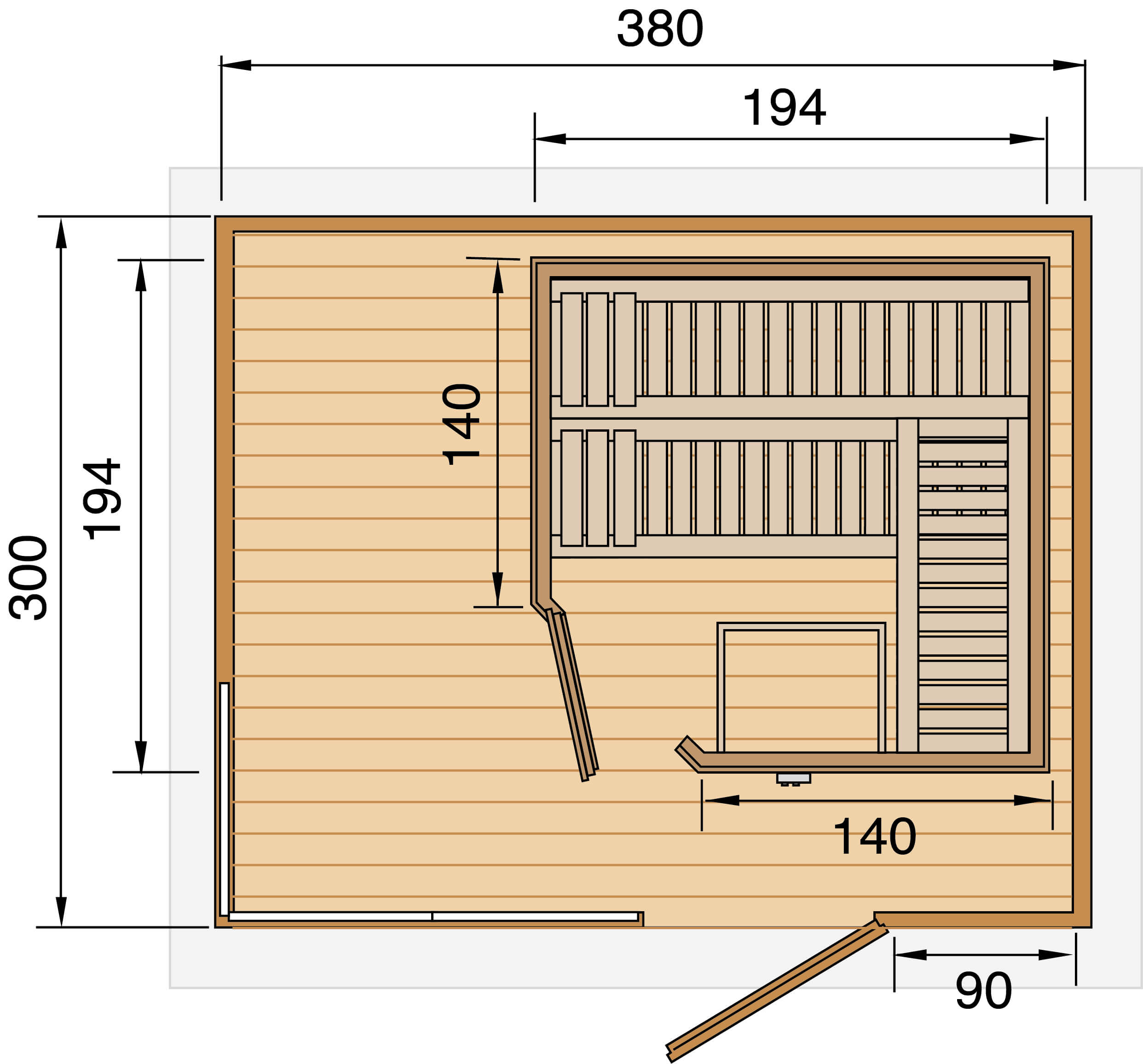 Aussenmass Sauna: B 194 x T 194 x H 199 cm