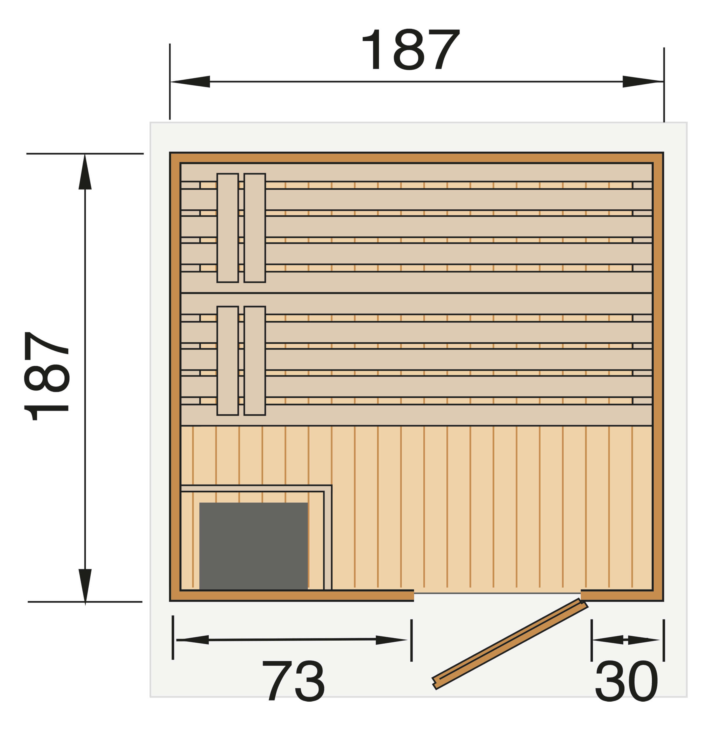 Sauna Grösse B 187 x T 187 x H 253 cm, als Bausatz.
