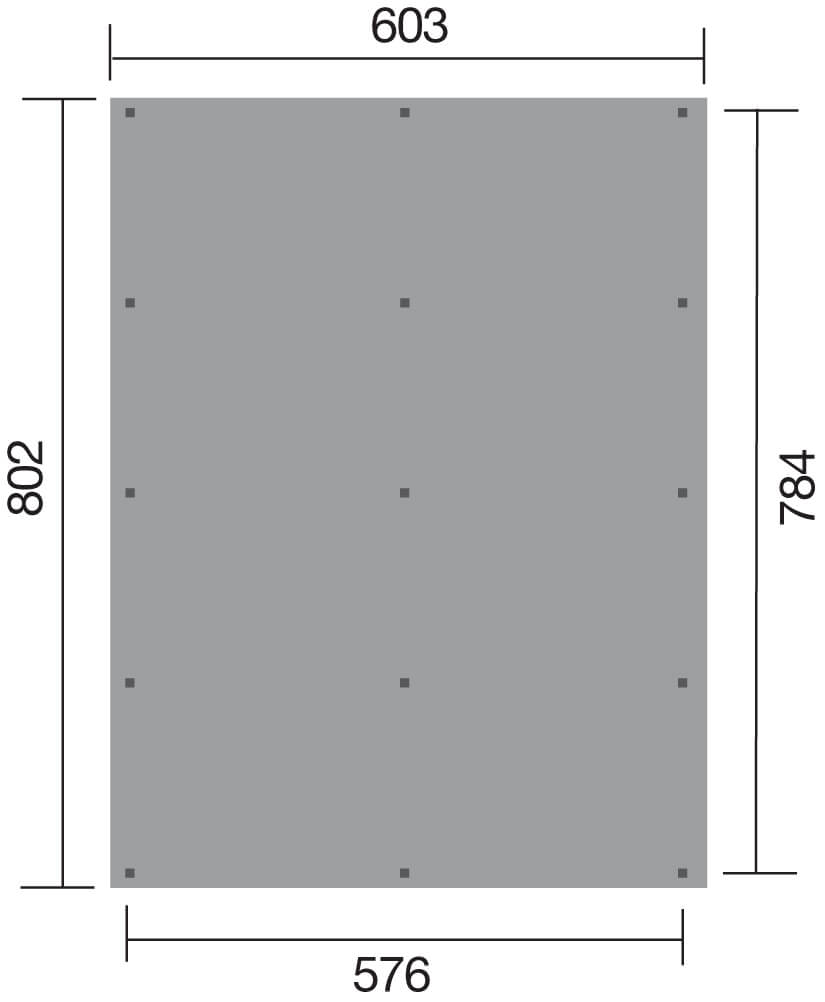 | Dach: | Graues Kunststoffdach mit 1,2mm Dachplatte |