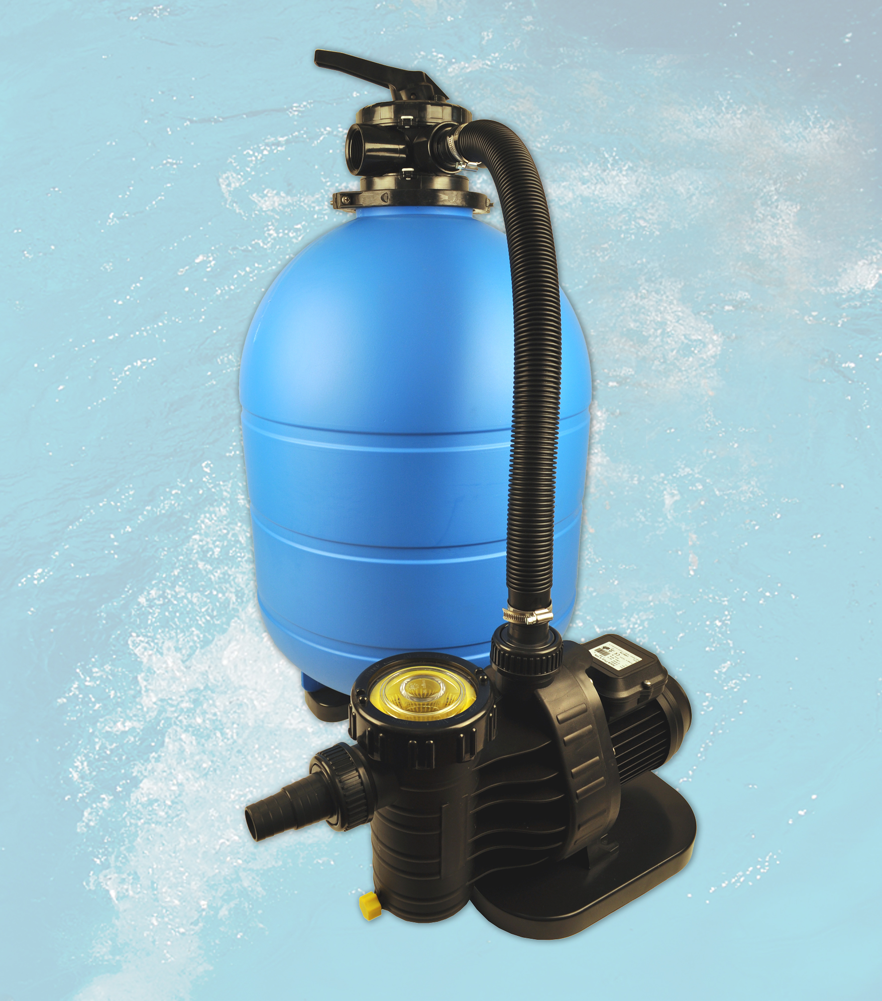 Die Weka Pumpe mit Sand-Filteranlage inklusive 3 Säcke Sand. Mit der Pumpe Maxi kann auch der Bodenreiniger benützt werden, da genügend Leitung vorhanden ist.